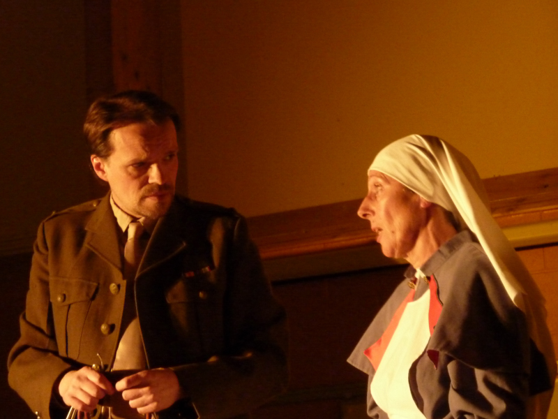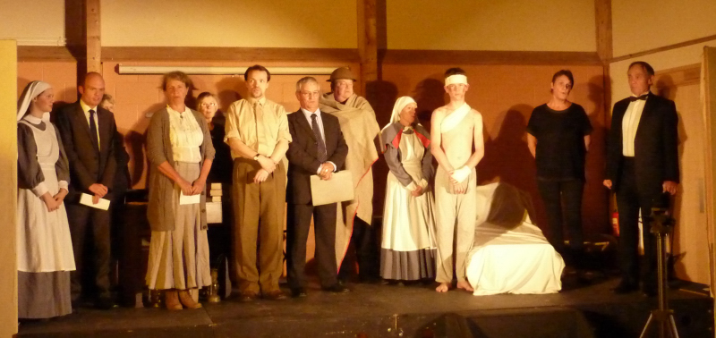 In October 2014 we were honoured to take part in a commemorative event organised by the Royal British Legion, to mark the centenary of the outbreak of World War 1.  We performed a one-act play “Hero”, by Michael Lynch, plus readings of “Dulce et Decorum Est” (Wilfred Owen), “Naming of Parts” (Henry Reed) and a selection of accounts from those involved in the Great War.